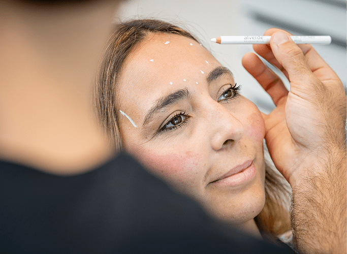 Vor der Injektion werden die zu behandelnden Areale markiert und ihre Haut gereinigt und desinfiziert. Die Behandlung mit Botulinumtoxin erfolgt mit ultrafeinen Kanülen und dauert nur wenige Minuten. Unser Anspruch ist es, natürliche und harmonische Ergebnisse zu erzielen, die Ihre Mimik und Ausdruckskraft bewahren – für eine frisches Erscheinungsbild ohne künstlichen Effekt.