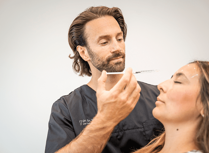 Vor der Injektion werden die zu behandelnden Areale markiert und ihre Haut gereinigt und desinfiziert. Die Behandlung mit Hyaluronsäure erfolgt mit ultrafeinen Kanülen und dauert nur wenige Minuten. Unser Anspruch ist es, natürliche und harmonische Ergebnisse zu erzielen, die Ihre Mimik und Ausdruckskraft bewahren – für eine frisches Erscheinungsbild ohne künstlichen oder übertriebenen Effekt.